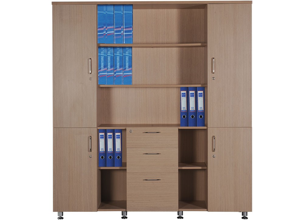 Tủ tài liệu 3 khoang gồm 2 khoang cánh mở và 1 khoang dài để tài liệu.