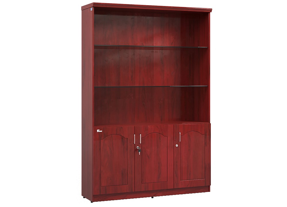 Tủ tài liệu phía trên không cánh có đợt đợt kính trang trí, phía dưới là ba khoang cánh mở có đợt để tài liệu.