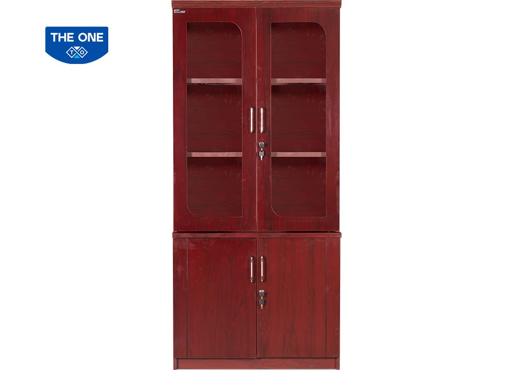 Tủ tài liệu 2 khoang, phía trên là 2 cánh khung kính để tài liệu, phía dưới có 02 cánh mở.