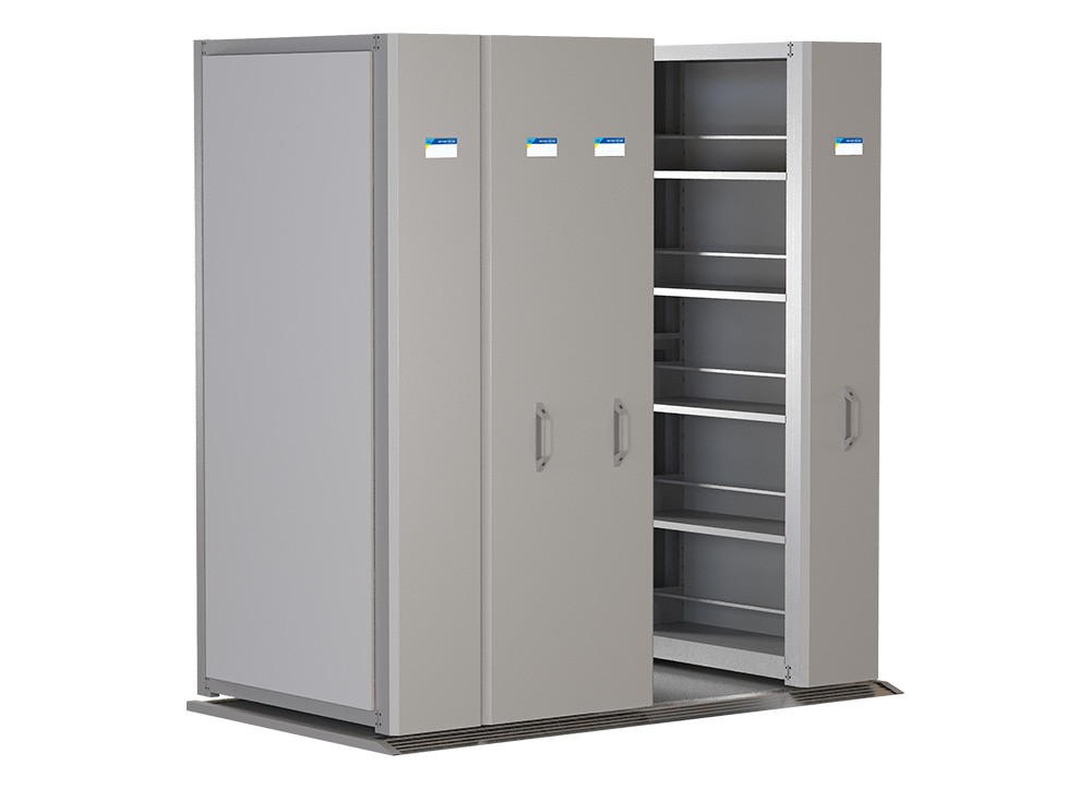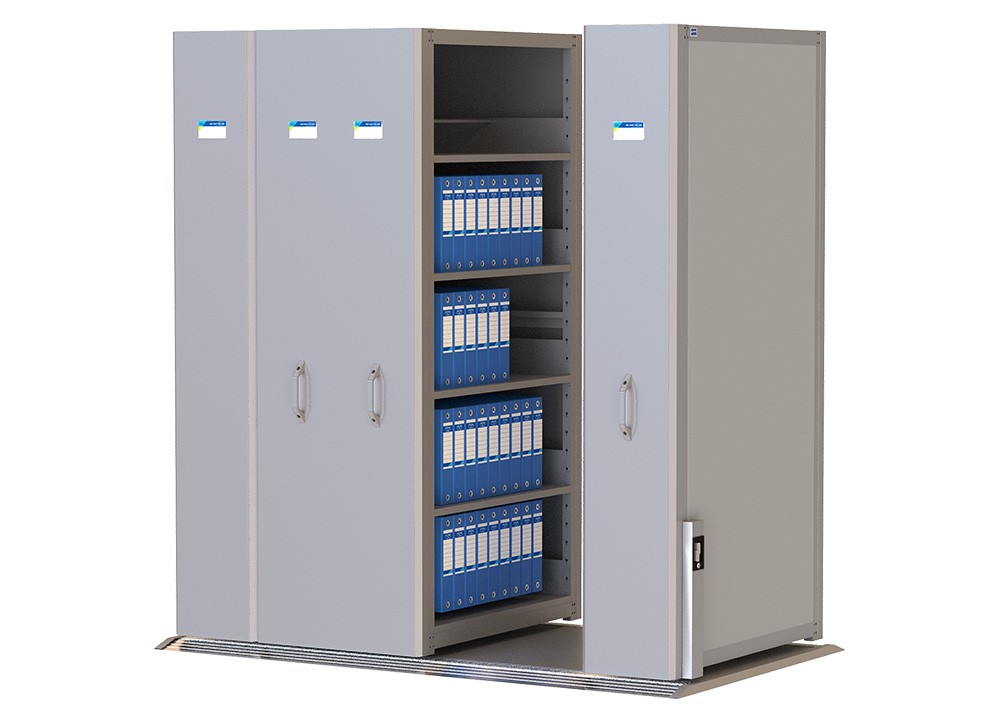 Tủ hồ sơ di động tay đẩy gồm có 4 khoang, mỗi khoang có 4 đợt di động và tạo thành 5 tầng để tài liệu.